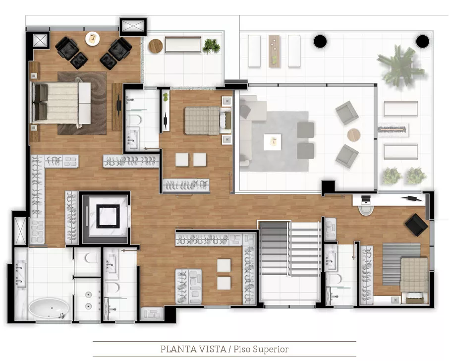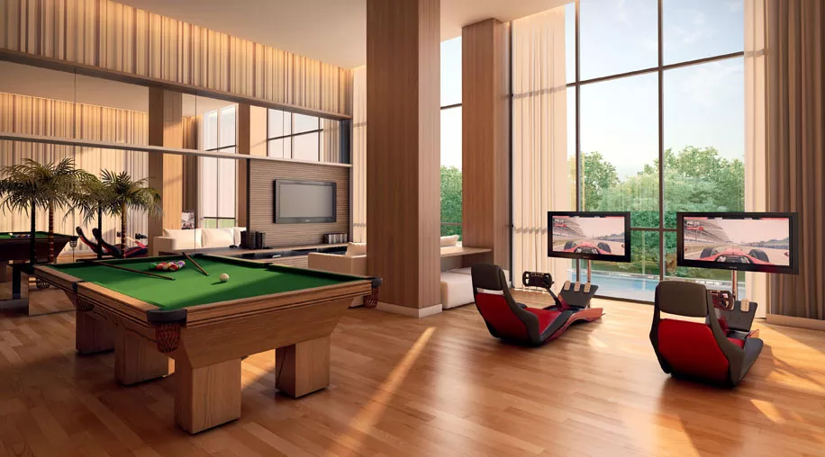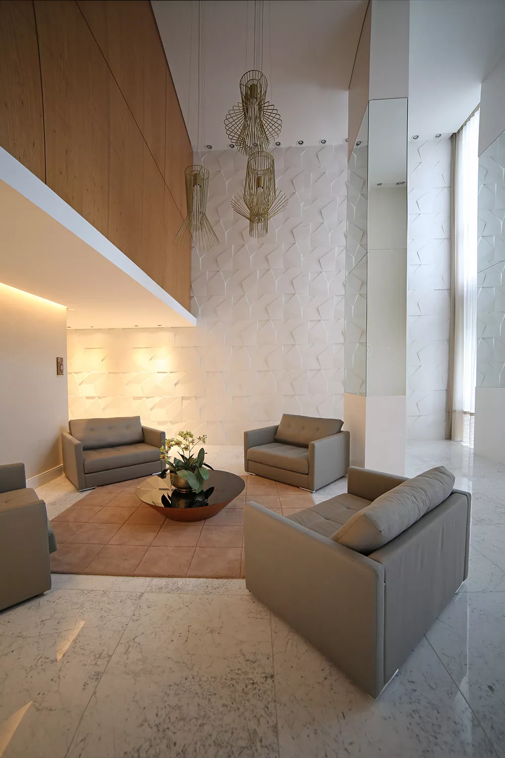 Os apartamentos de luxo deste empreendimento foram projetados em residências suspensas e duplex.