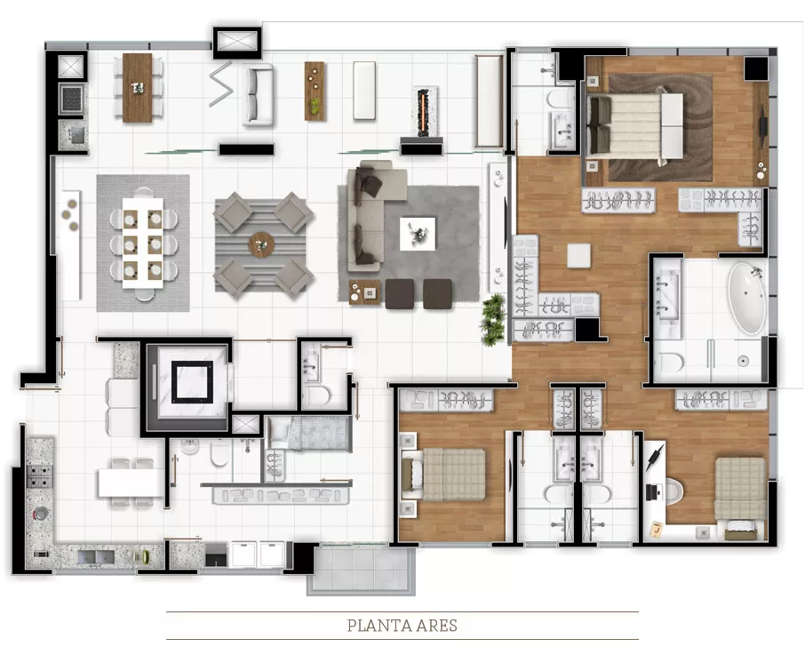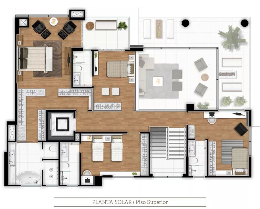 - Piso aquecido nos quartos, nos banheiros e nas salas