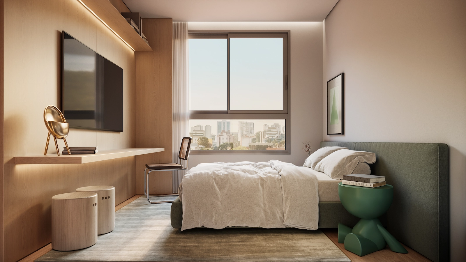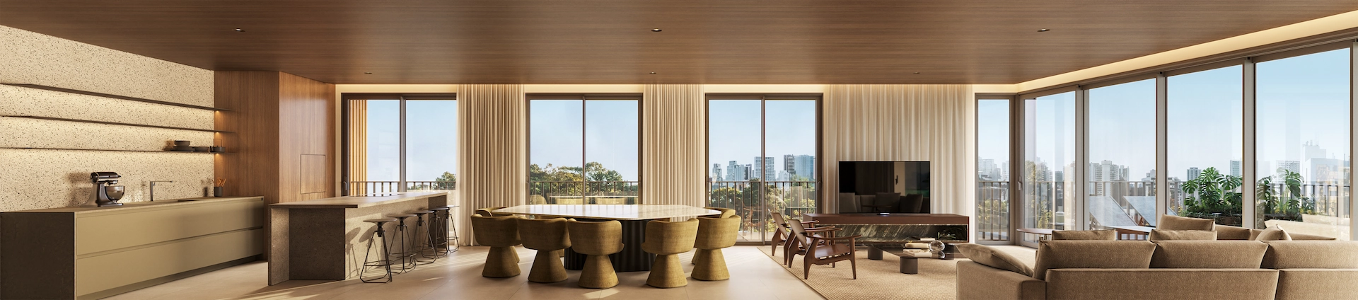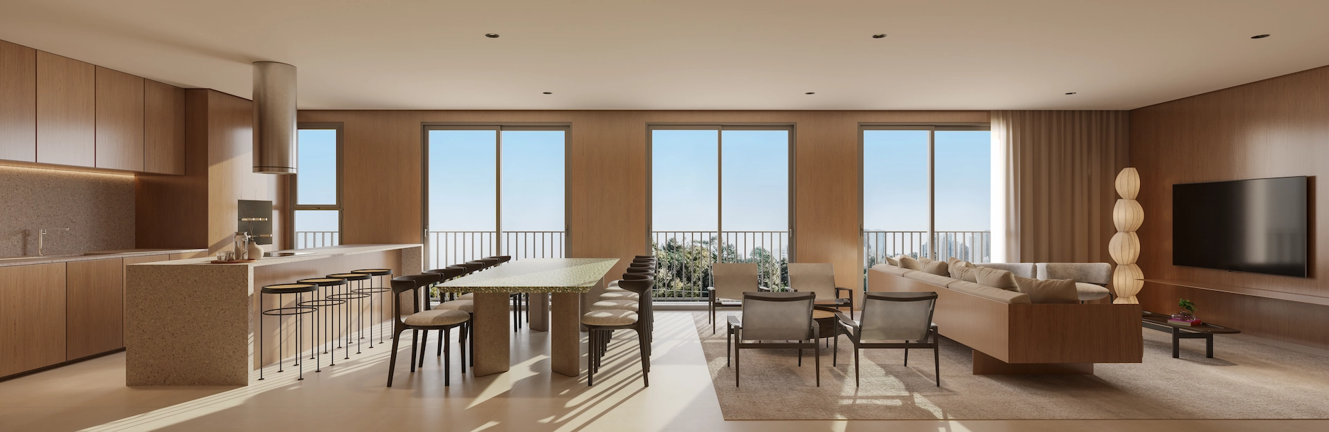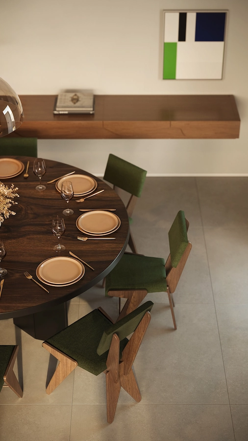 “O projeto de interiores dos apartamentos do JOÁ foi pensado para criar espaços atemporais, que acompanham o ritmo da vida contemporânea