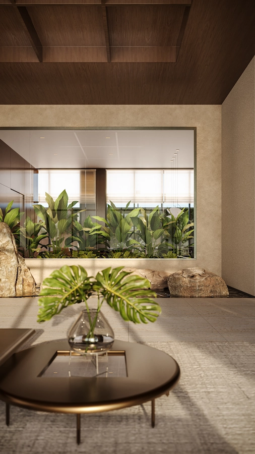 com profundidade e autenticidade. Utilizamos materiais que valorizam texturas naturais, como madeira e pedra, para compor ambientes acolhedores