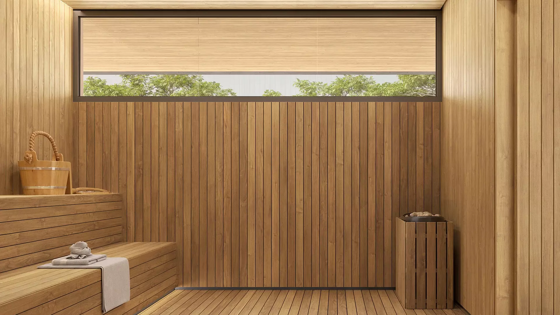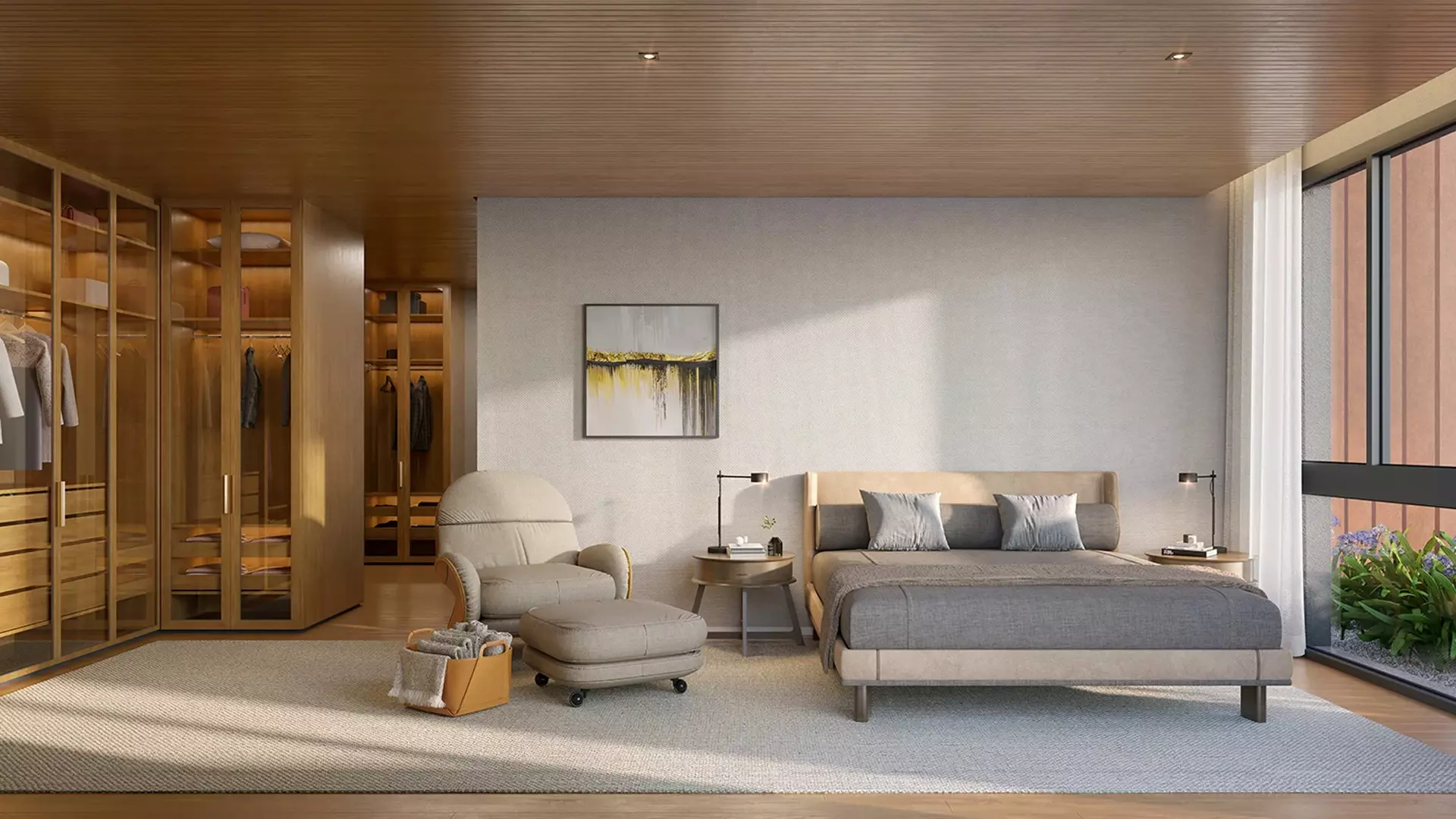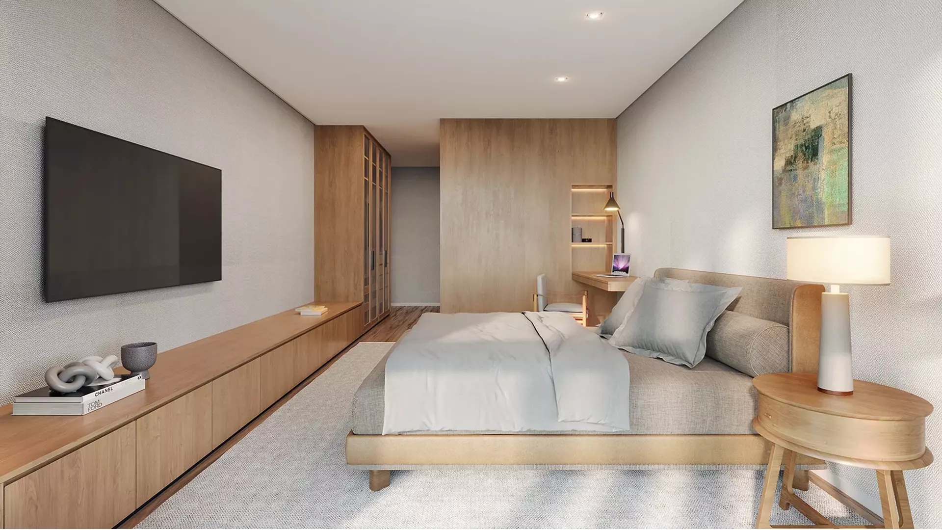 Piso de madeira engenheirada nas áreas sociais e nos quartos;