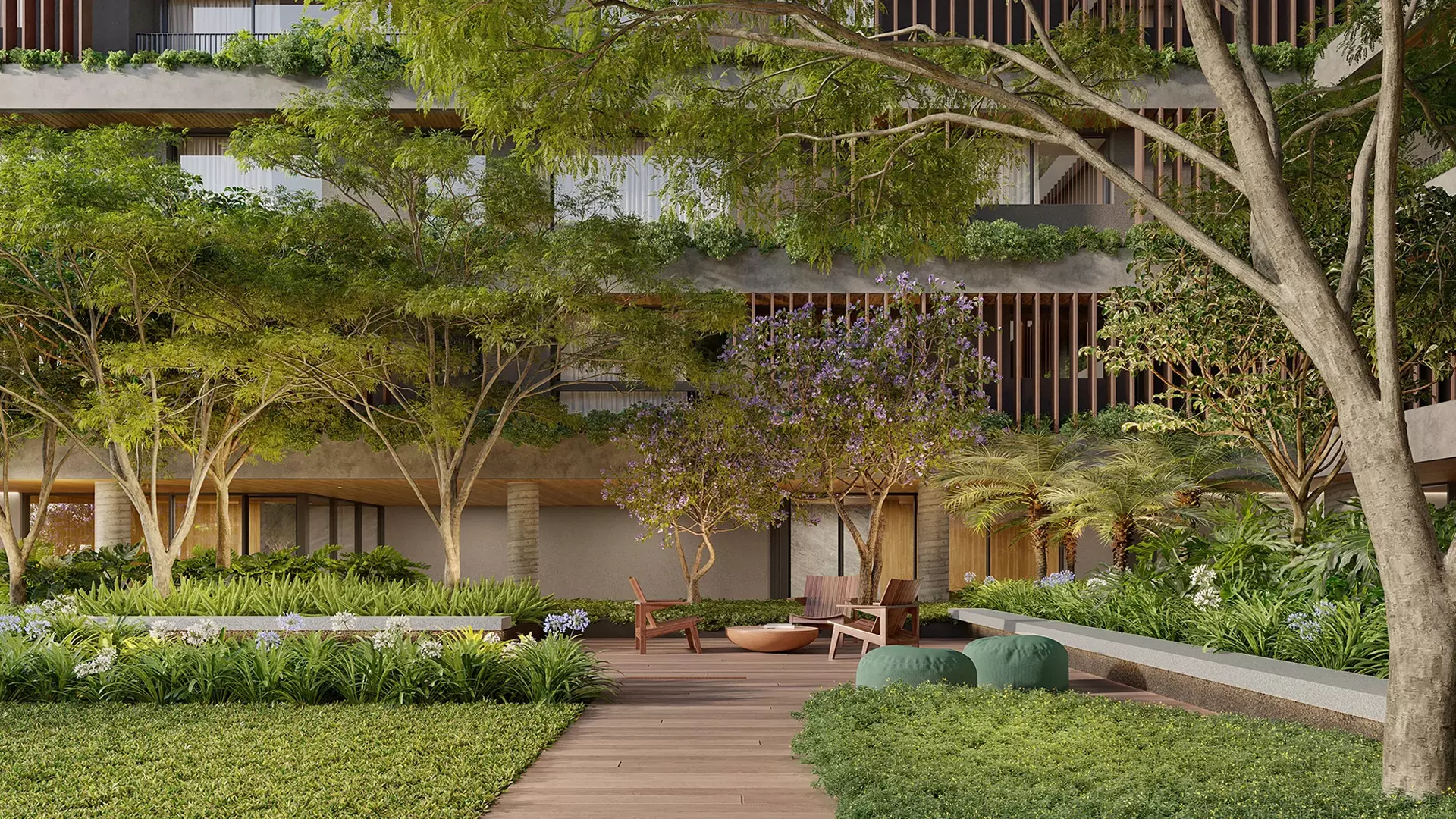 Um terreno de 1 hectare na melhor região do Bigorrilho abraça este empreendimento único, cercado de parques naturais e com partido arquitetônico fundamentado em uma volumetria escalonada. Formado por verdadeiras casas suspensas que dialogam com o entorno e onde a natureza pede passagem.