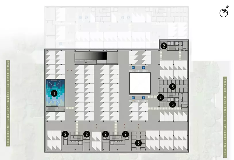 É no encontro entre três ruas que respeitamos o entorno, mas fizemos o novo, lá no topo.