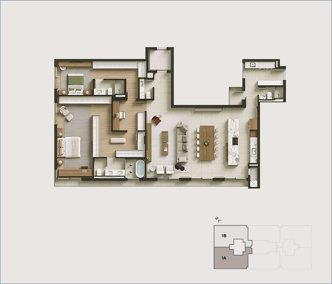 “O projeto de interiores dos apartamentos do JOÁ foi pensado para criar espaços atemporais, que acompanham o ritmo da vida contemporânea