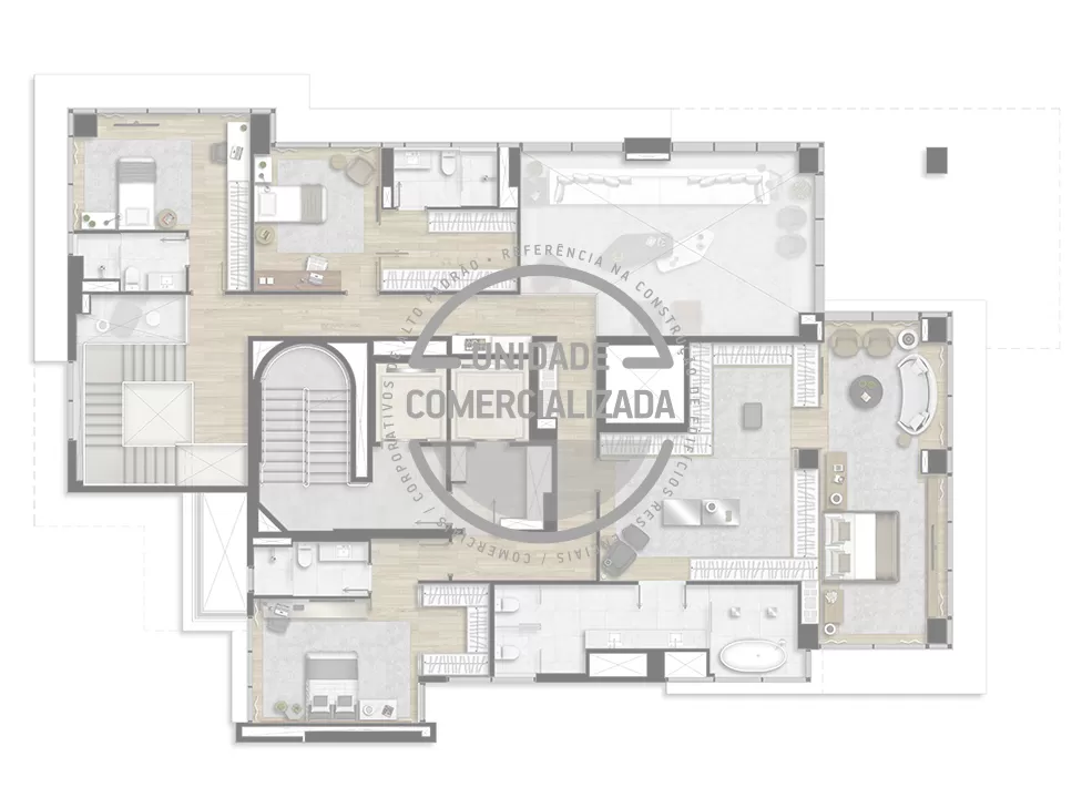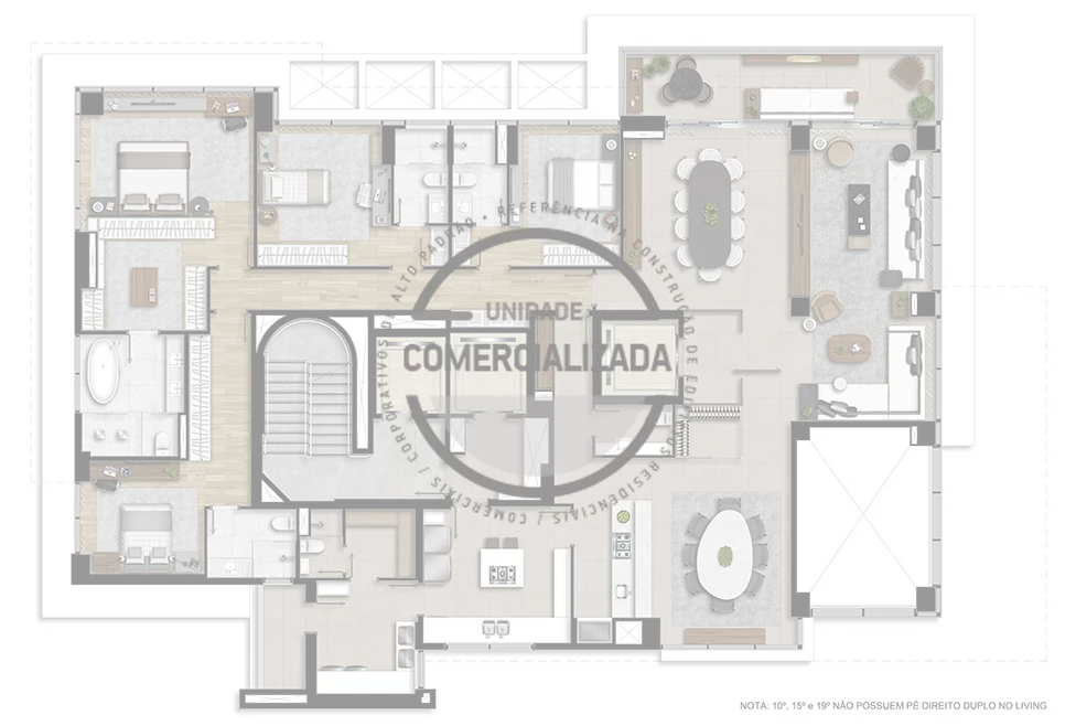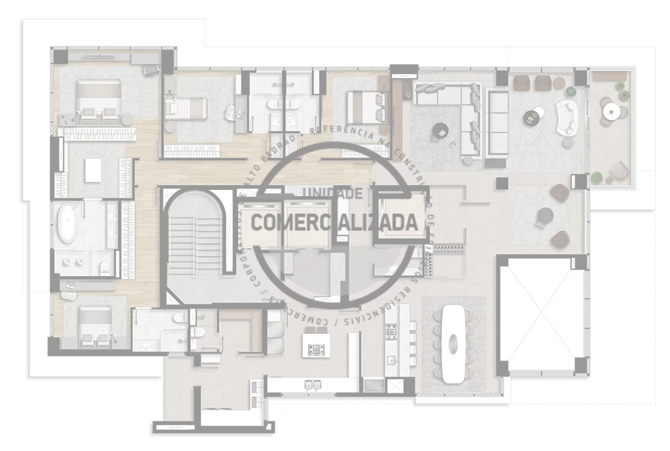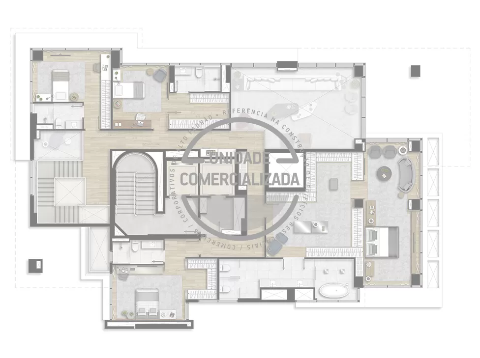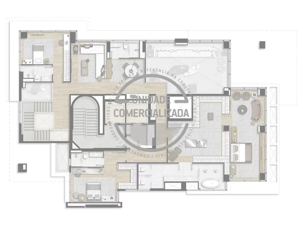 - Piso aquecido na área íntima (suítes e banheiros – exceto área do box) com termostato digital e controle individual da temperatura por ambiente