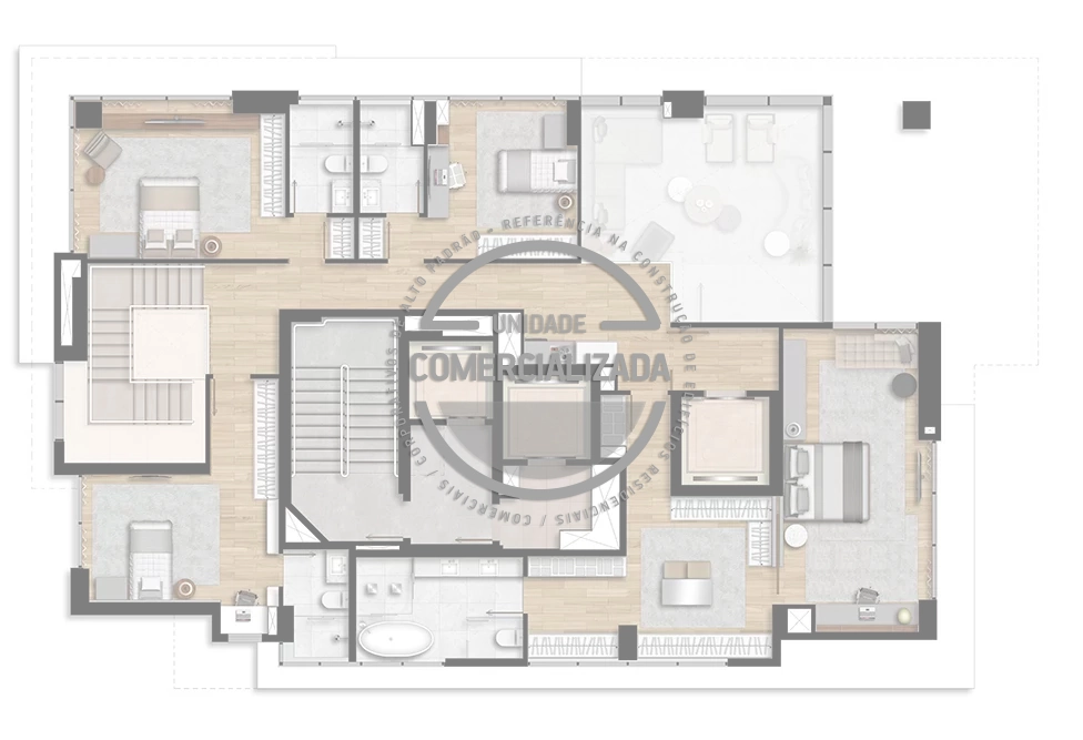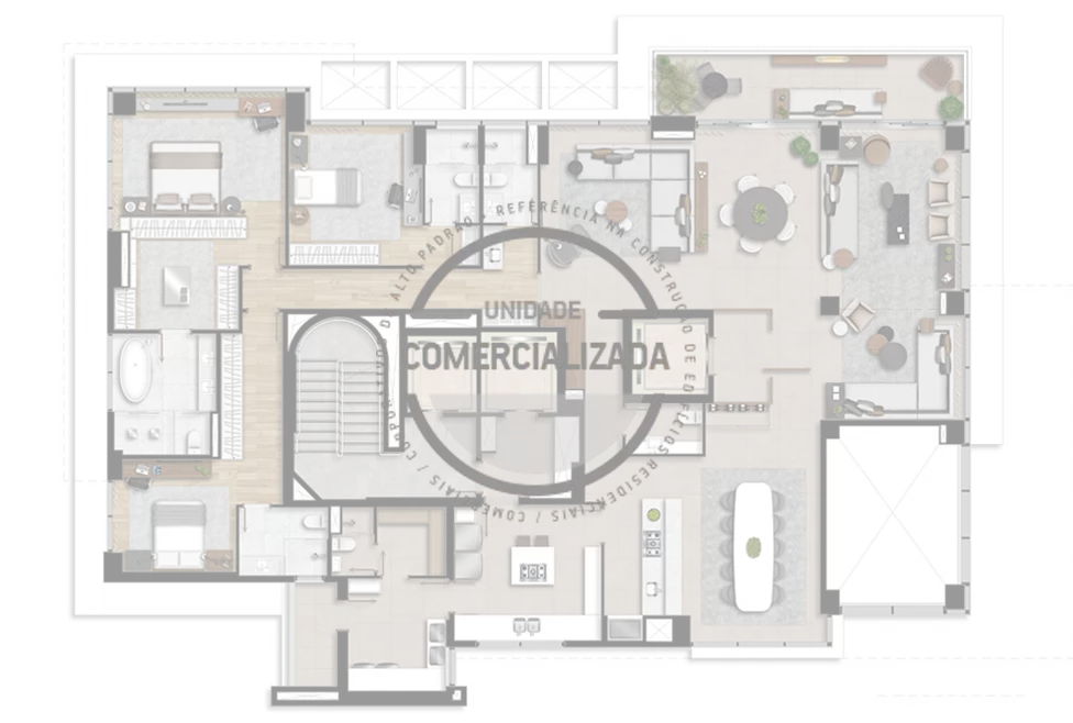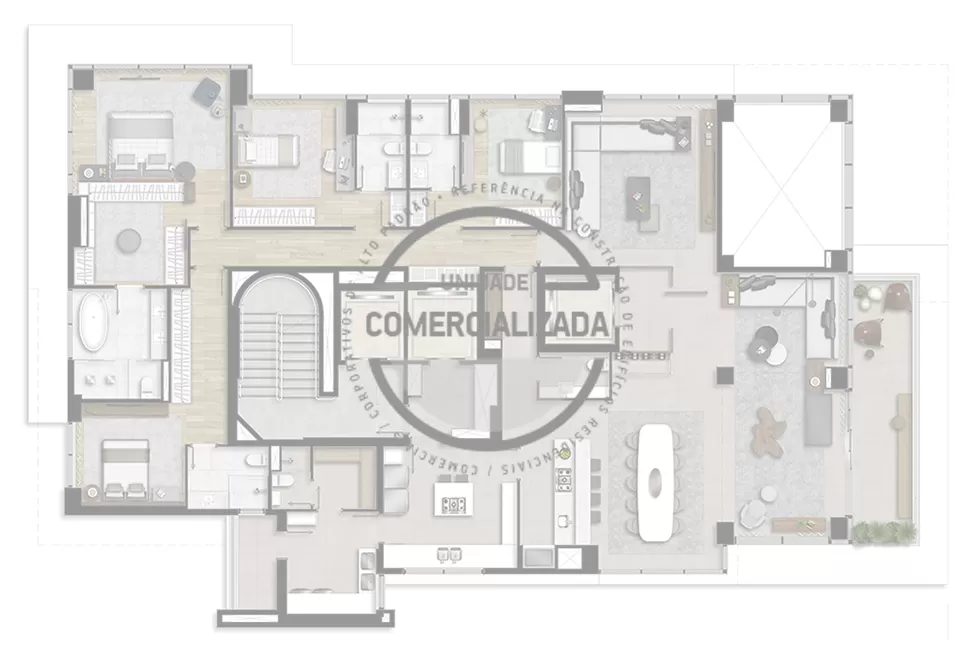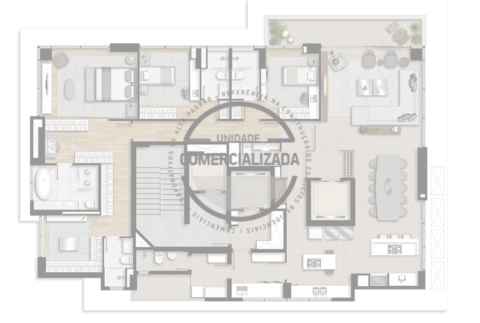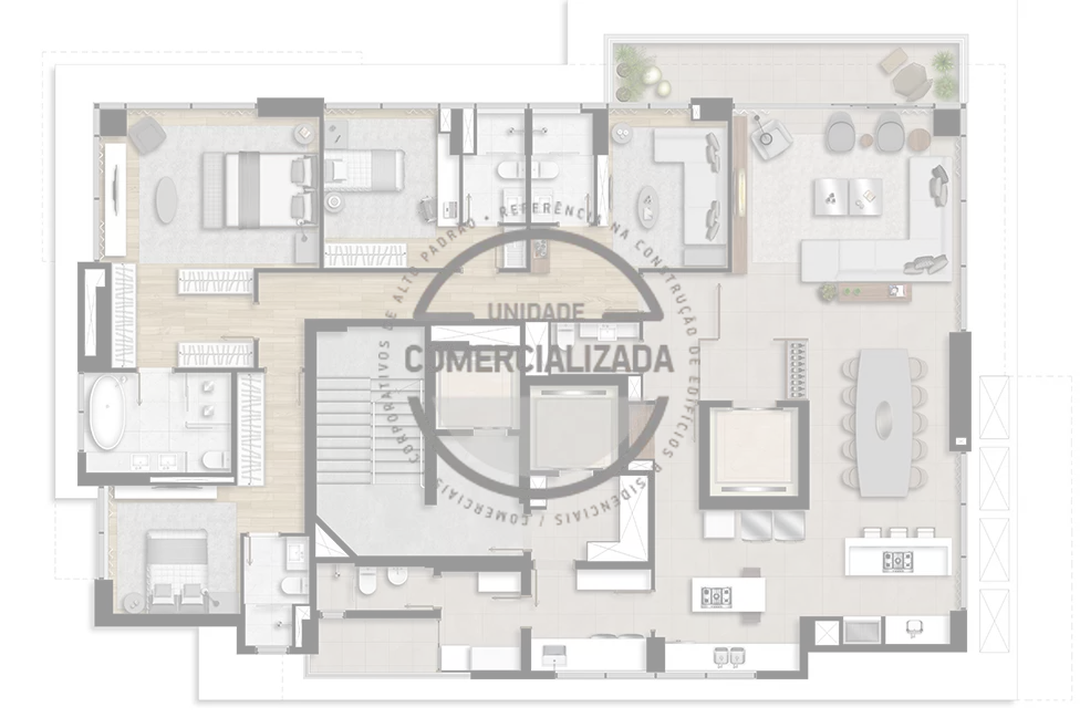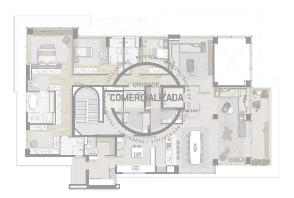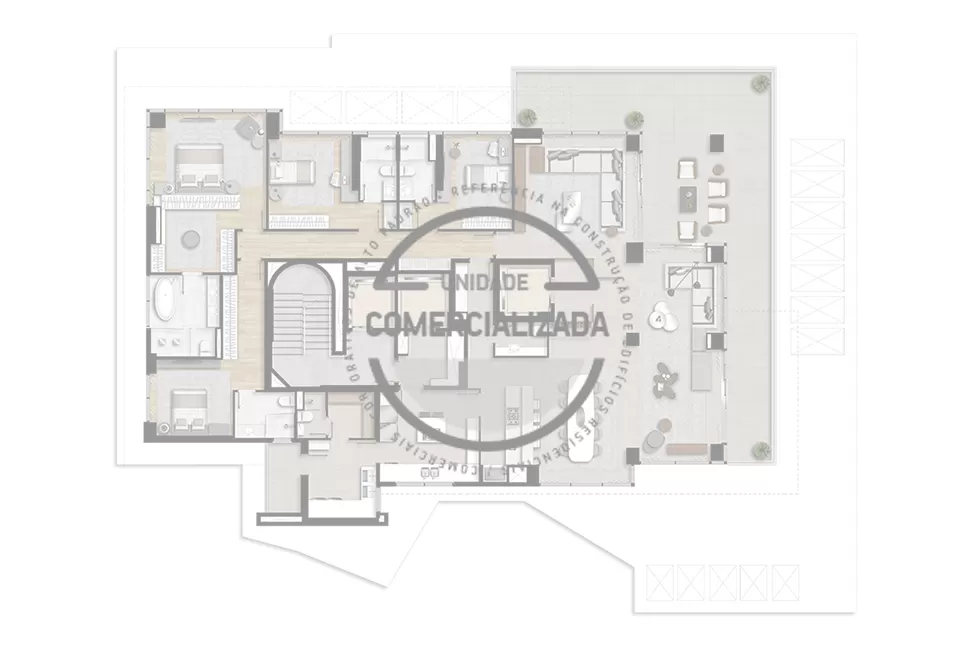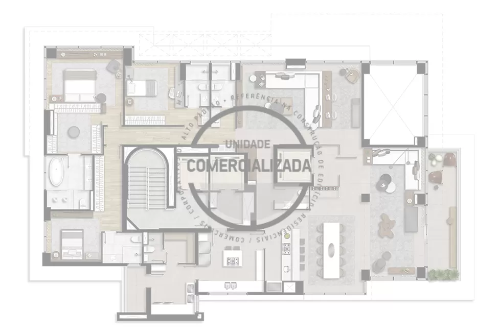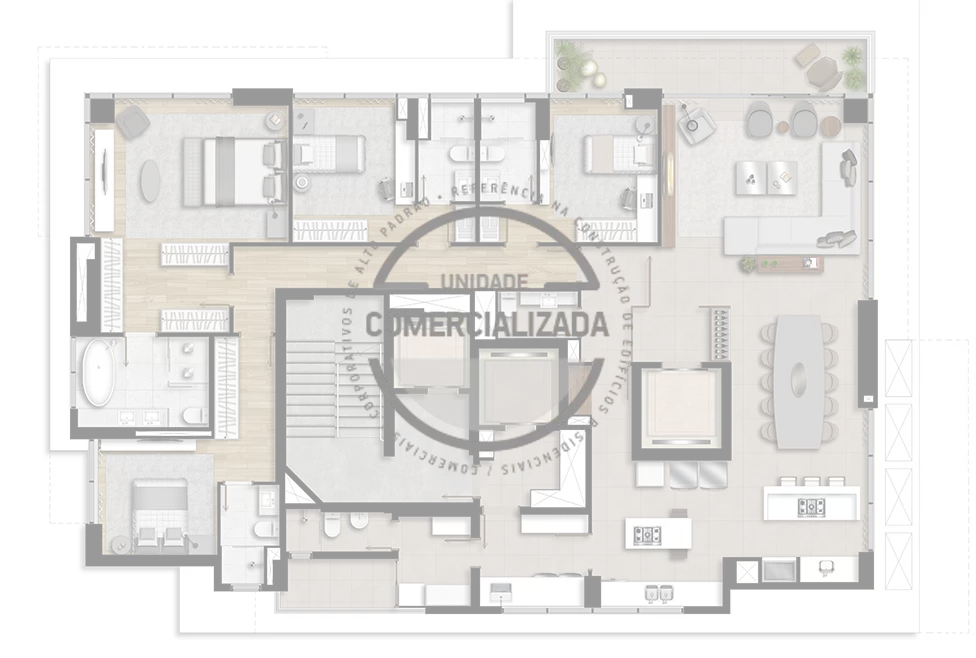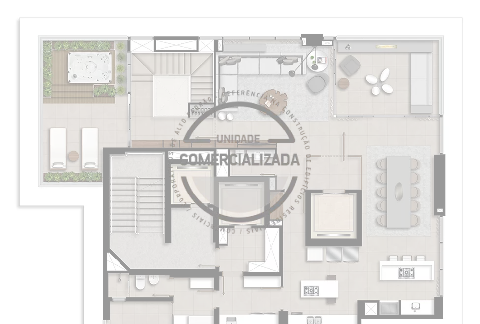 - Personalização com opções de planta e acabamentos: serviço a ser contratado com a Construtora