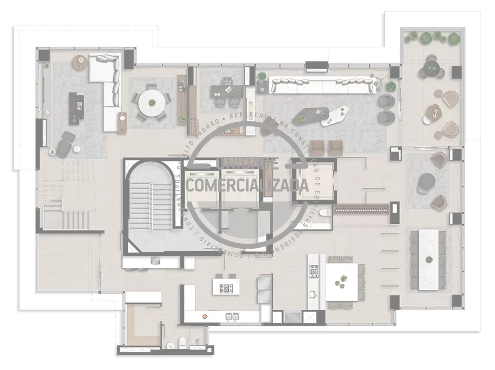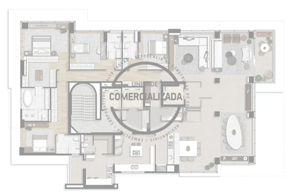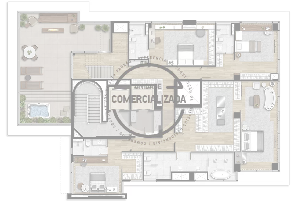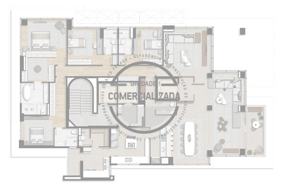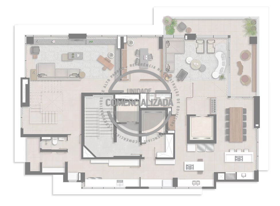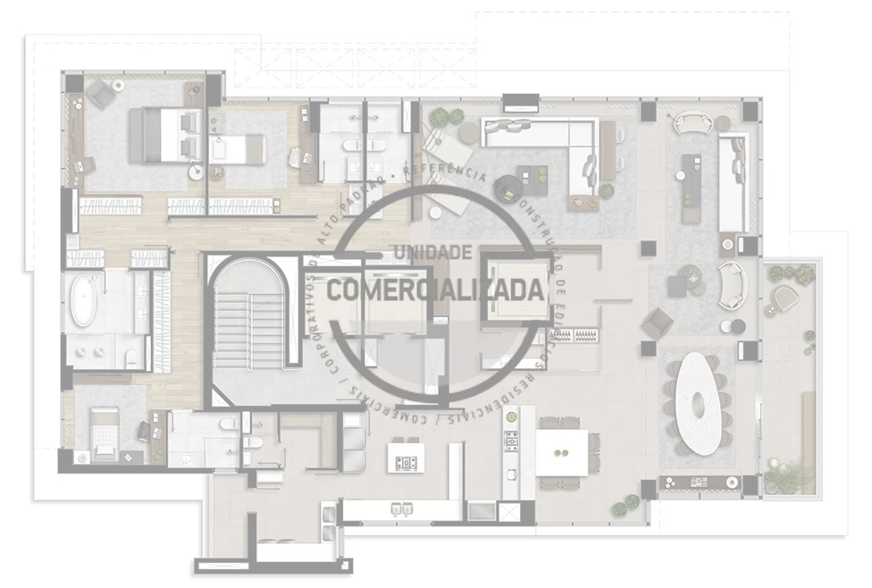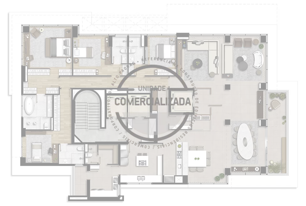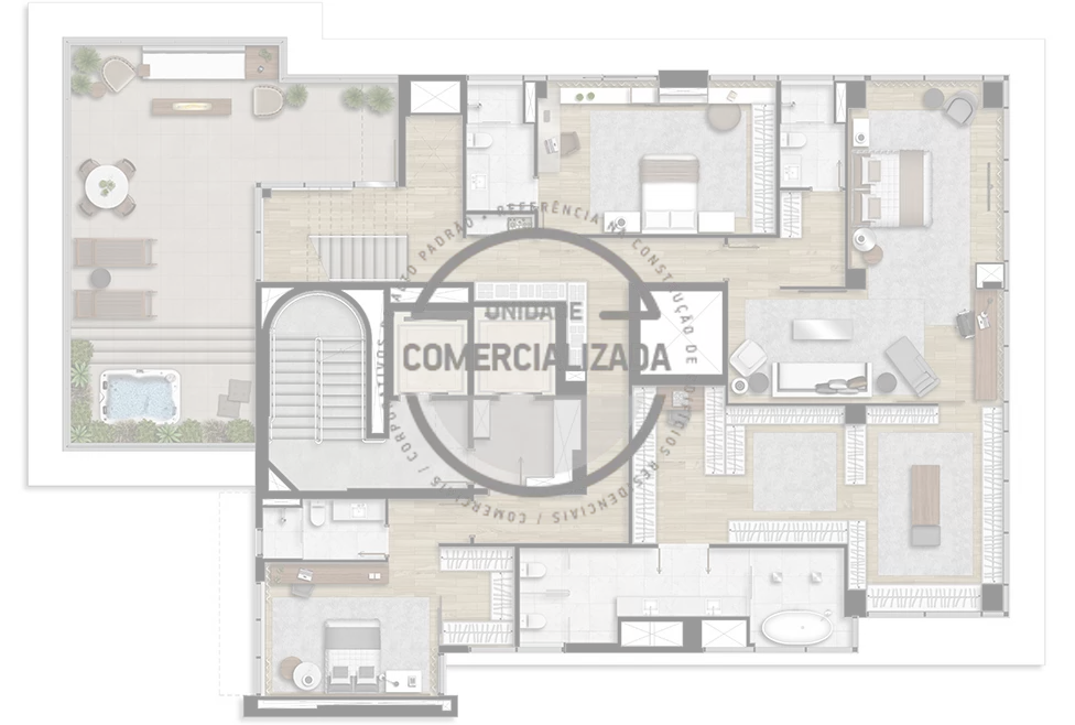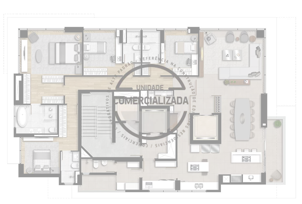 - Personalização com opções de planta e acabamentos: serviço a ser contratado com a Construtora